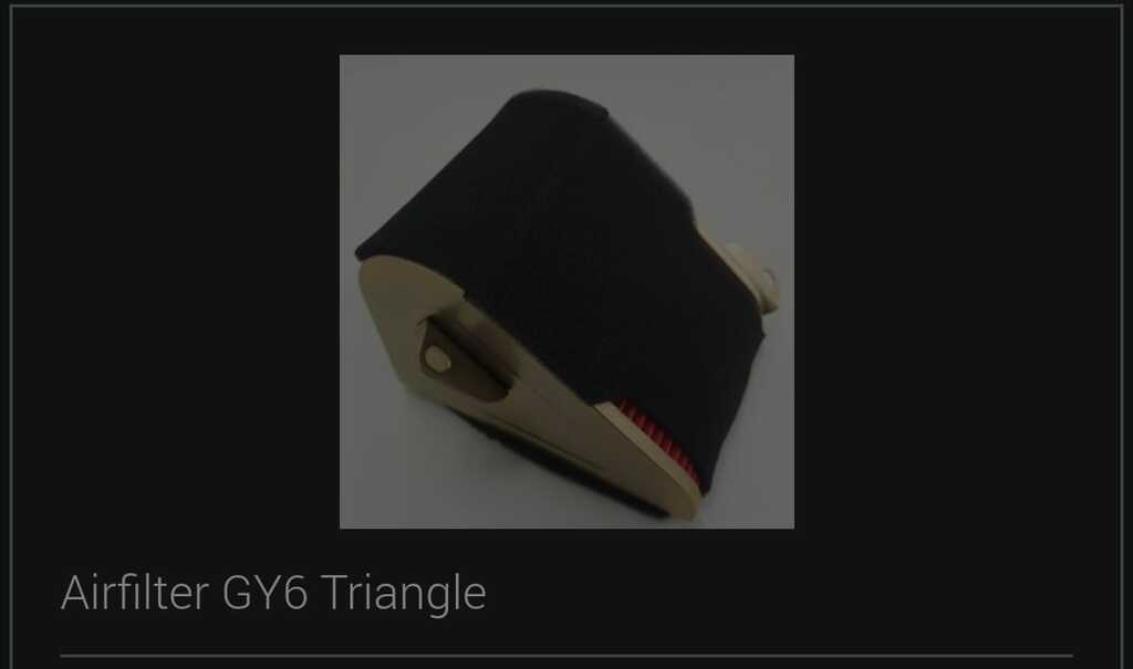 Triangle-shaped air filter for GY6 engines. Designed to trap dust and improve airflow efficiency. Features foam and pleated filter layers for optimal performance and durability in scooters.